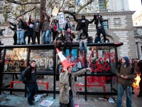 Британские студенты вновь митингуют против повышения платы за обучение. Вчера днем, 24 ноября десятки тысяч молодых людей заполонили Трафальгарскую площадь в Лондоне. Протестующие планировали дойти до штаб-квартиры Партии либерал-демократов, однако попали в оцепление полиции, в котором удерживались до самой ночи. Сотни студентов и школьников провели в холодную погоду провели много часов под открытым небом, блокированные полицейскими кордонами. К вечеру не выдерживающие демонстранты, закрыв лица от камер, начали бить окна в здании Казначейства, а также почти полностью сожгли автобусную остановку рядом с министерством.